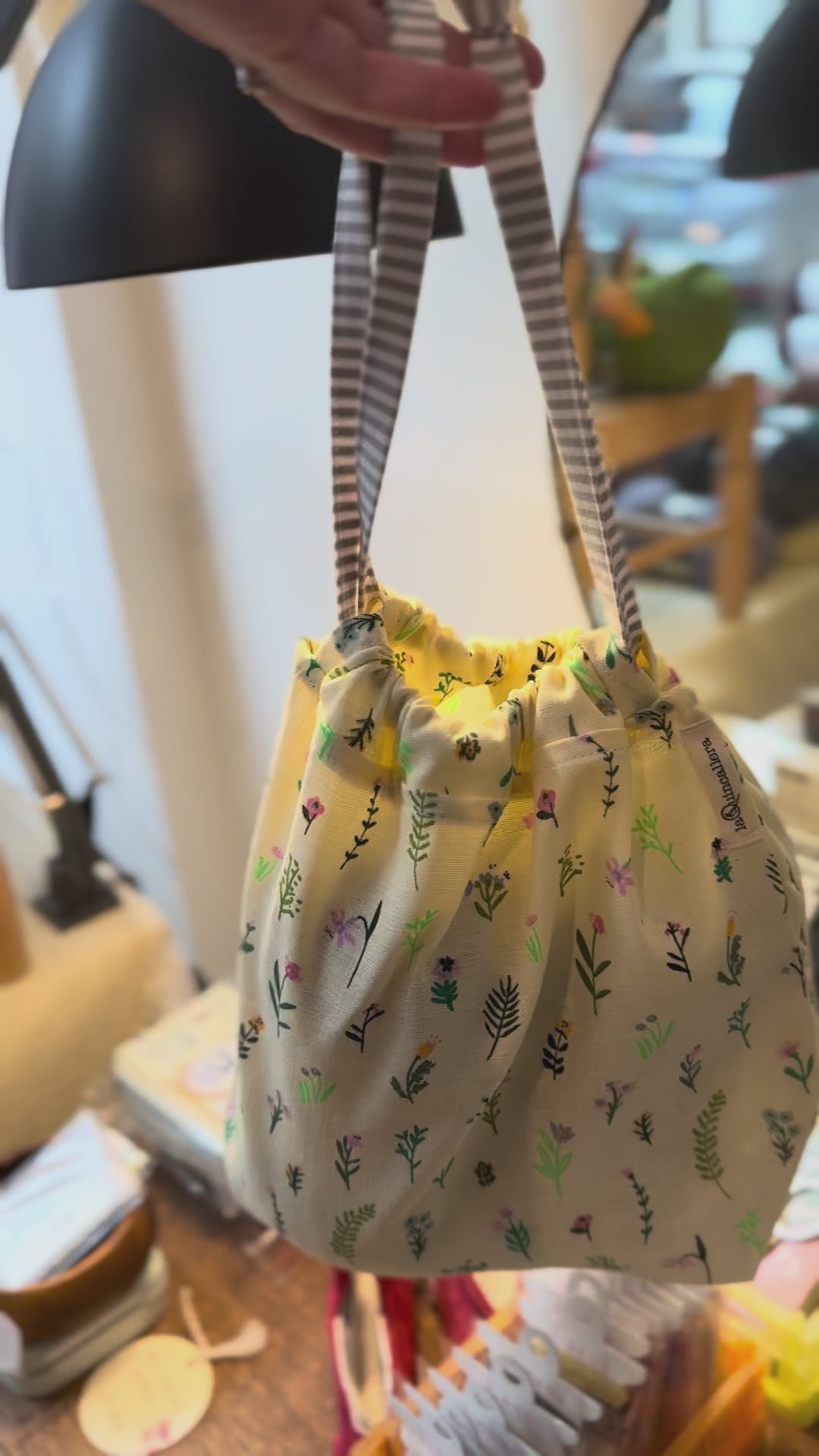 Bolsitas hechas a mano en Santander por María. De algodón, perfectas para guardar tus proyectos de punto y ganchillo.